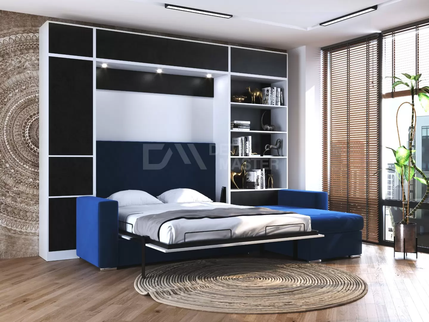 Шкаф-кровать трансформер с диваном "Big Family Balance"работает на механизме раскладывания собственной разработки "Balance". Кровать раскладывается легким движением руки, превращаясь в полноценное спальное место. Просто потяните за ножку-маятник, которая самостоятельно фиксируется в нужное положение при опускании.
