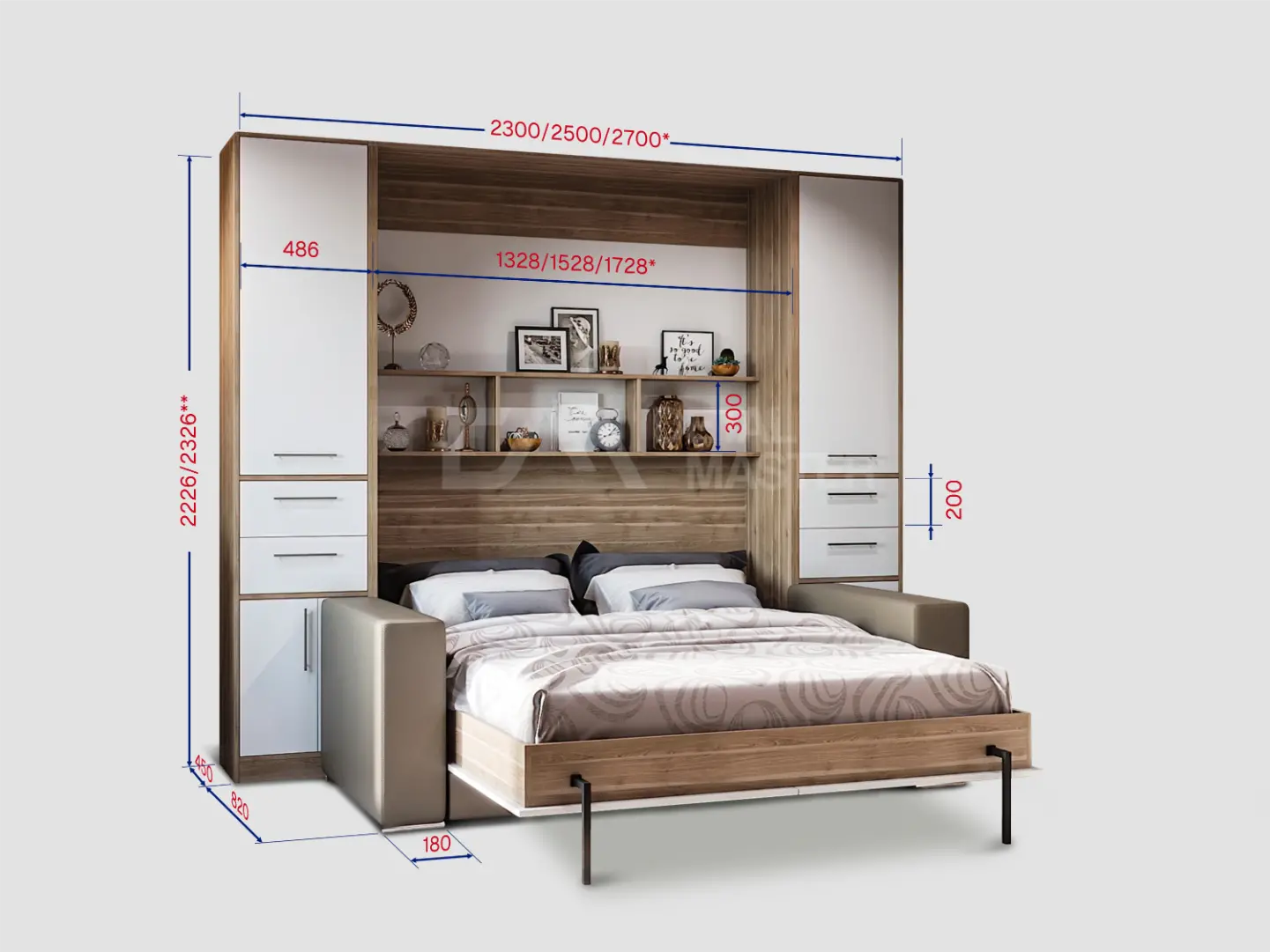 Дополнительные опции, такие как: освещение, зарядное устройство, розетки, мягкое изголовье, матрас - не входят в стоимость шкаф-кровати "Extra Start". Вы всегда можете их добавить в опциях или написав менеджеру при оформлении заказа.